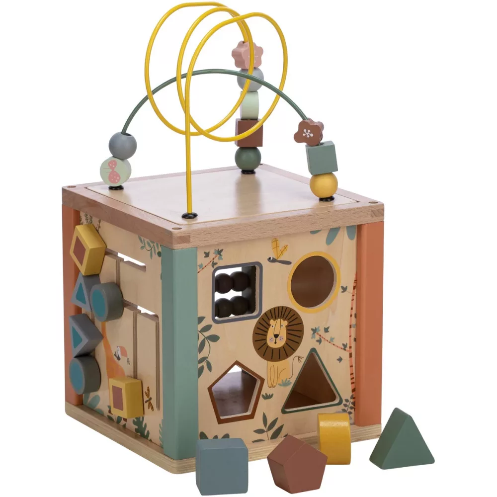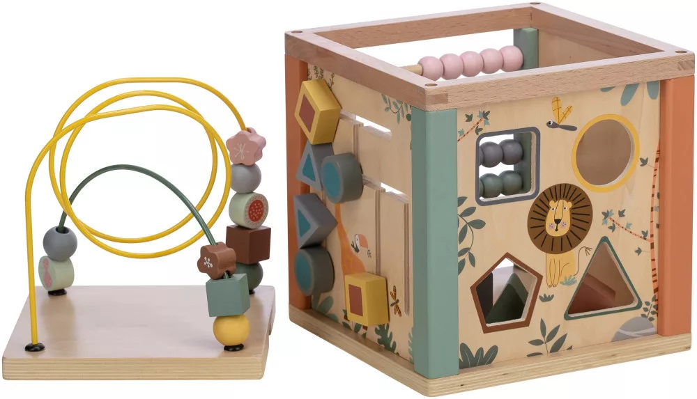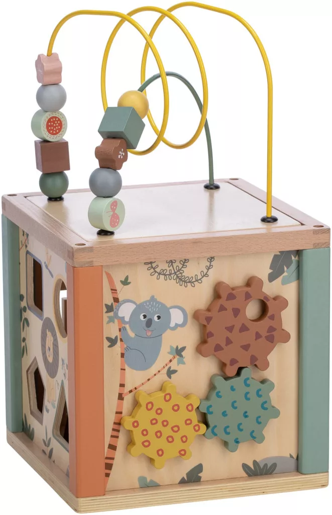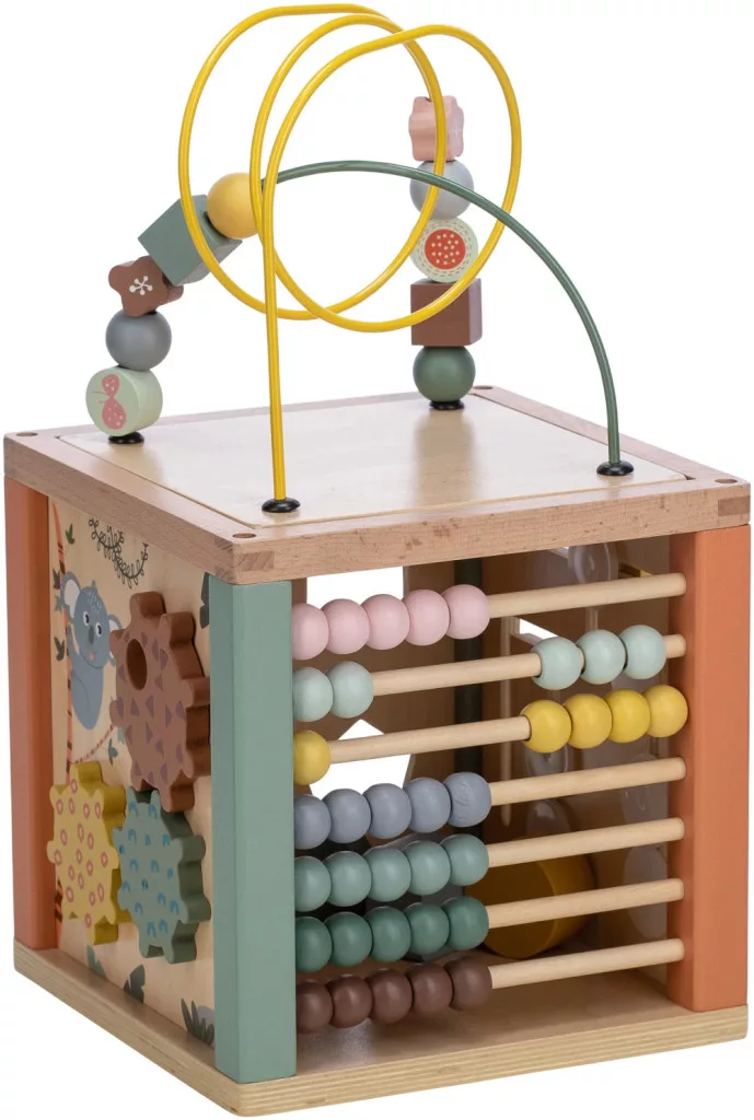 • Multifunkcionális design: Minden oldala egy-egy új kihívást jelent, beleértve a formák illesztését, mozgó elemeket, forgatható részeket és egyéb meglepetéseket, amelyek fenntartják a gyerekek érdeklődését.