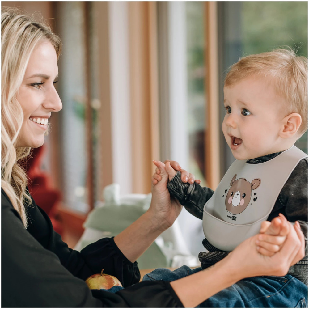 • Szilikon előke puha és gyengéd a baba érzékeny bőréhez
