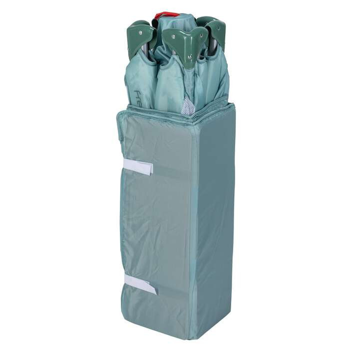 A hálós oldalfalak biztosítják a megfelelő szellőzést és lehetővé teszik, hogy mindig szemmel tarthassa gyermekét. Az utazóágy gyorsan és egyszerűen összecsukható, a mellékelt hordtáskának köszönhetően pedig könnyen szállítható. A termék játékbölcsőként is használható, így nappal is ideális választás.