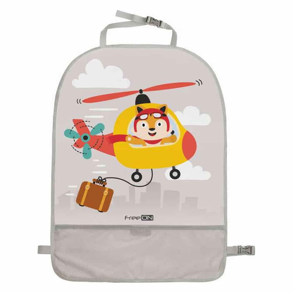 A FreeON "Fox" zsebes ülésvédő egy praktikus autós kiegészítő, amely védi az első ülések hátulját a gyermekek által okozott szennyeződésektől és sérülésektől. A termék aranyos rókás mintával rendelkezik, ami vidám hangulatot kölcsönöz az autó belső terének.
