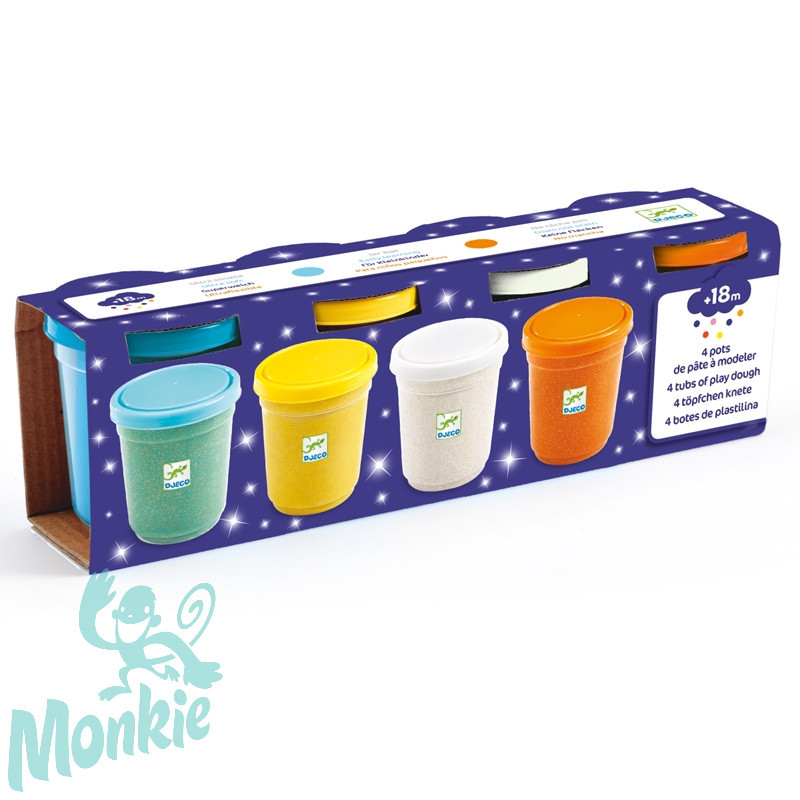Gyurma - Pillegyurma, 4 csillámos szín - 4 pots of glittery play dough