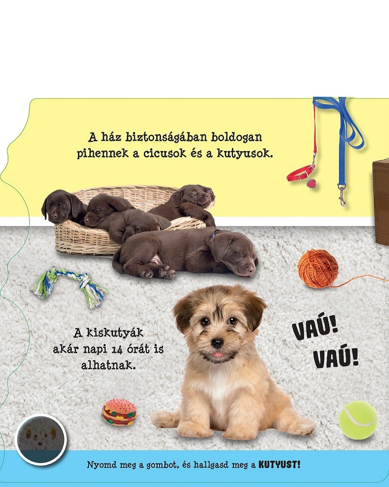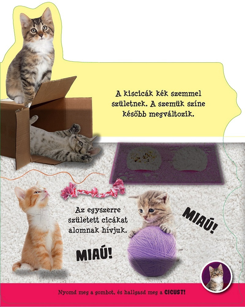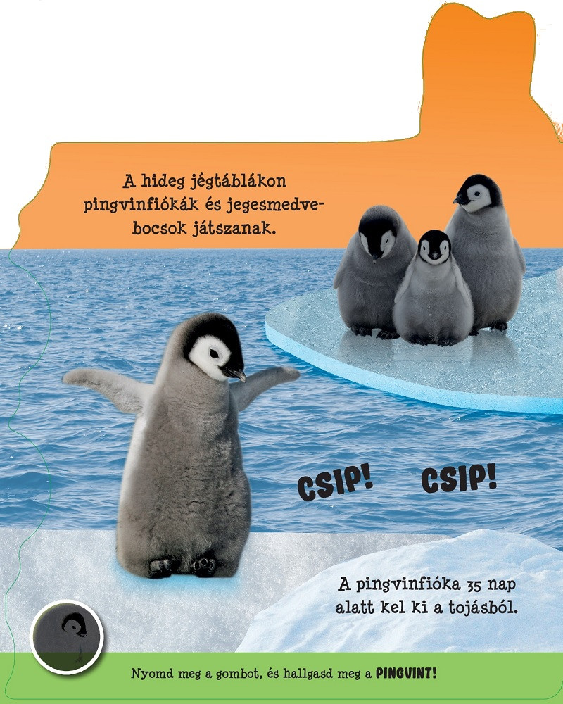 VAÚ! CSIP! MIAÚ! Ebből a könyvből megismerheted az állatkölykök hangját, sőt egy-egy érdekes információt is találsz róluk a lapokon. 10 hang és sok színes fotó segít abban, hogy jobban megismerhesd az állatok hangját.