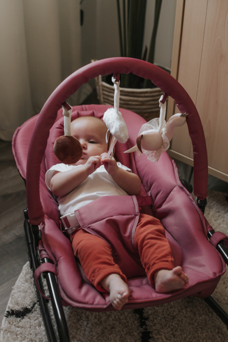 Ebben az édes rózsaszín pihenőszékben minden kislány jól érezné magát. Nagy segítségünkre lehet otthon egy pihenőszék, mert segít kisbabánkat elaltatni, ha óvatosan hintáztatjuk benn. De ha csak egy kis elfoglaltságunk lenne, akkor is magunkkal vihetjük és szemmel tarthatjuk a székben amíg mi mondjuk elkészítjük az ebédet. A biztonsági övnek köszönhetően nem kell félnünk attól, hogy gyermekünk kifordul, vagy kimászik a székből. A székhez tartozik 3 db plüss díszt is melyekkel gyermekünk el tud játszani.