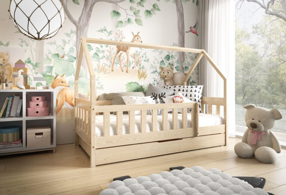 Az ágy tömör fenyőfából készült, ami hosszú évekre garantálja a tartósságot és a stabilitást. Formája nemcsak gyönyörű dísze gyermeke szobájának, hanem kényelmes és egészséges alvást is biztosít a kicsinek. Az elemek lekerekítettek és simára csiszoltak.