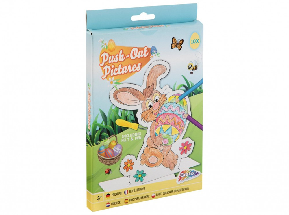 Színezd ki a csomagban található 10 húsvéti témájú képet, majd perforáld azokat a mellékelt eszközzel és a vonalak mentés nyomd ki a paprlapokból. A figurák alját meghajlíthatod, így azok megállnak majd a talpukon.