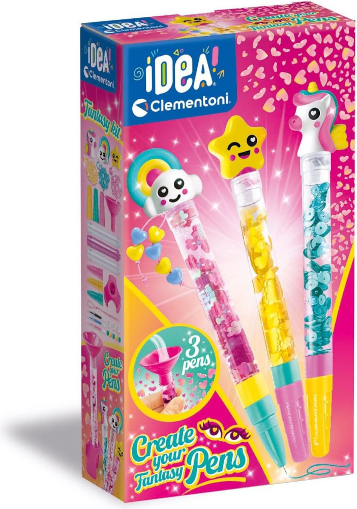 A dobozban 3 toll elkészítéséhez elegendő alapanyagot és kiegészítőt találhattok. A Clementoni tervezői ezzel a készlettel a fantázia világát ötvözik a kreatív alkotás örömével.