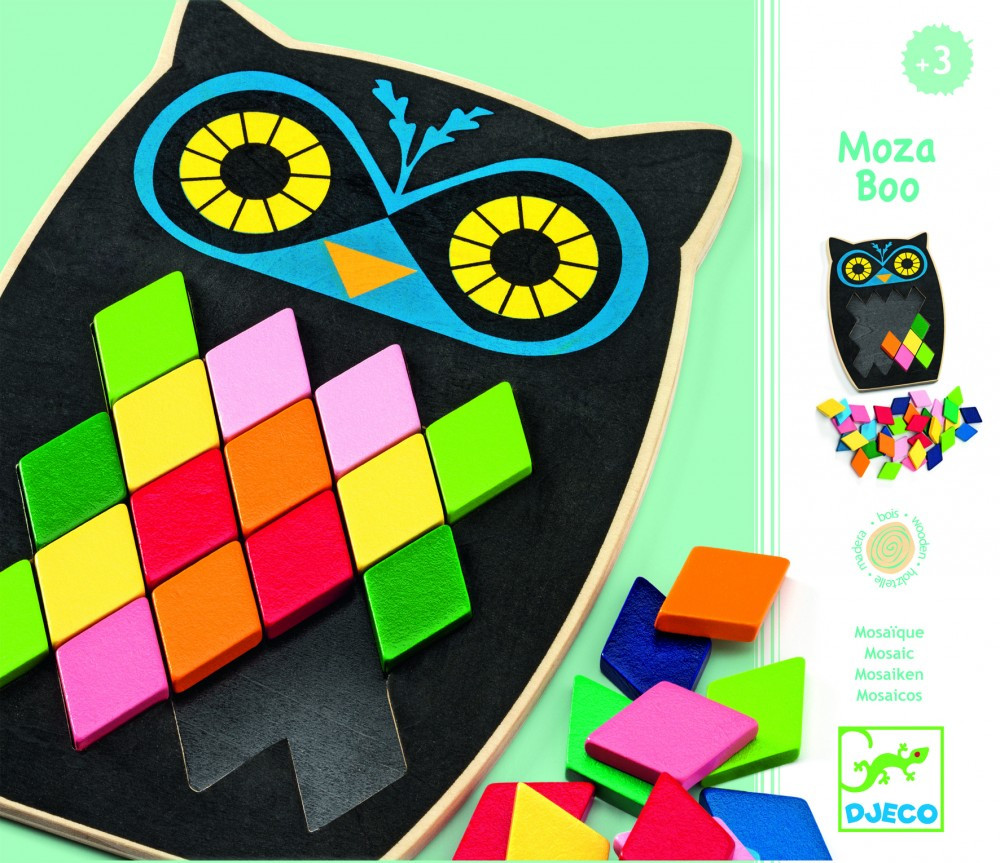 Baglyos, fantáziadús fa mozaikos kirakó , mely során fejlődik a gyermekek finommotorikus mozgása, kreativitása. A játék tartalmaz sablon kártyákat is, melyek segítik a kicsiket a kiarkásban.