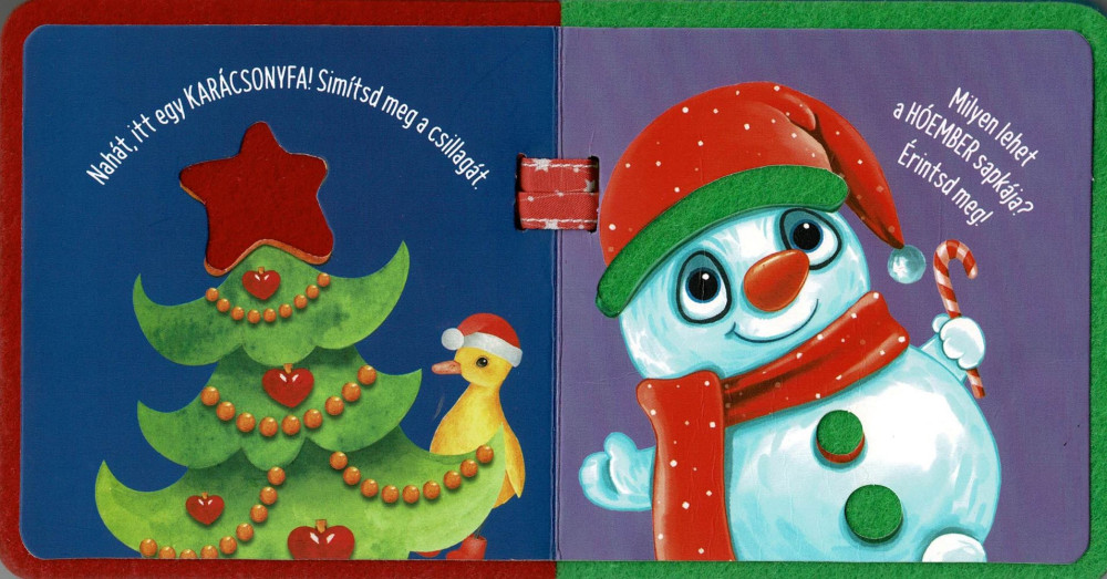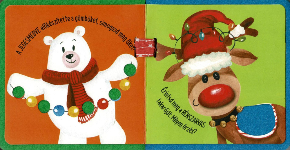 A kedves, apró kezekbe való kötet minden oldalán egy színes, megsimogatható elem várja kis olvasóit, hogy elrepíthesse őket a legszebb családi ünnep hangulatába.