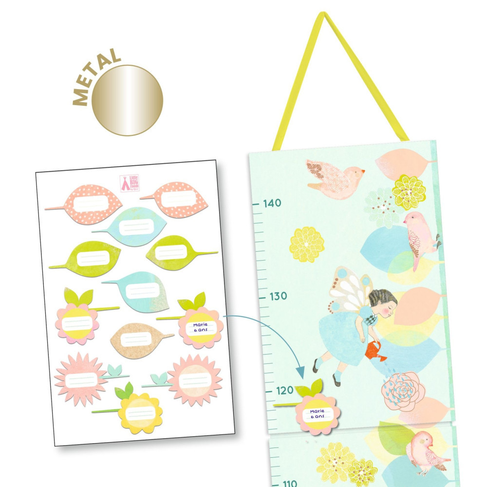 A felhelyezett matricával 140 cm-ig mérhető a gyermek magassága, az áthelyezhető matricákra írható a mérés dátuma.