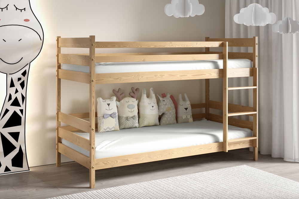 Az ágy tömör fenyőfából készült, ami hosszú évekre garantálja a tartósságot és a stabilitást. Formája nemcsak gyönyörű dísze gyermeke szobájának, hanem kényelmes és egészséges alvást is biztosít a kicsinek. Az elemek lekerekítettek és simára csiszoltak.