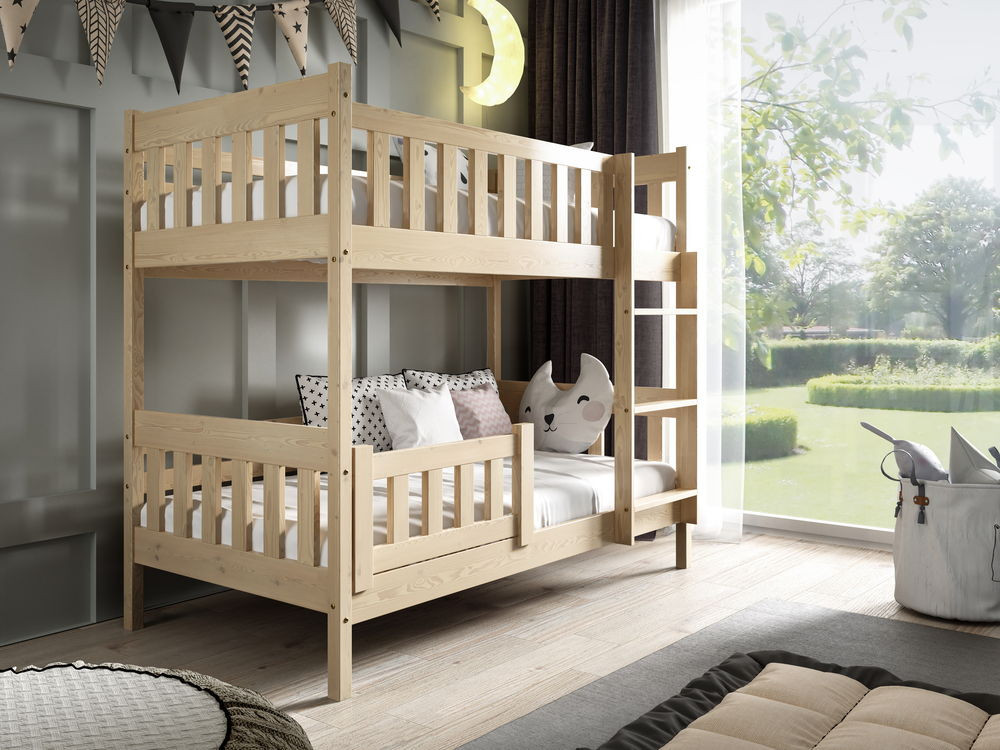 Az ágy tömör fenyőfából készült, ami hosszú évekre garantálja a tartósságot és a stabilitást. Formája nemcsak gyönyörű dísze gyermeke szobájának, hanem kényelmes és egészséges alvást is biztosít a kicsinek. Az elemek lekerekítettek és simára csiszoltak.