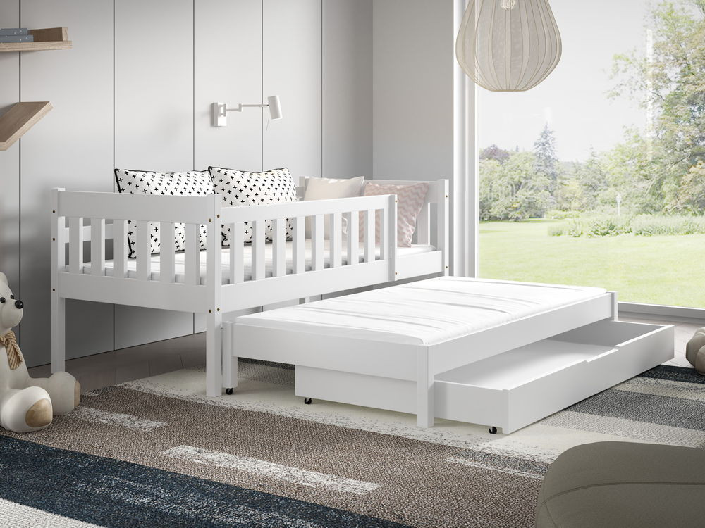 Az ágy tömör fenyőfából készült, ami hosszú évekre garantálja a tartósságot és a stabilitást. Formája nemcsak gyönyörű dísze gyermeke szobájának, hanem kényelmes és egészséges alvást is biztosít a kicsinek. Az elemek lekerekítettek és simára csiszoltak.