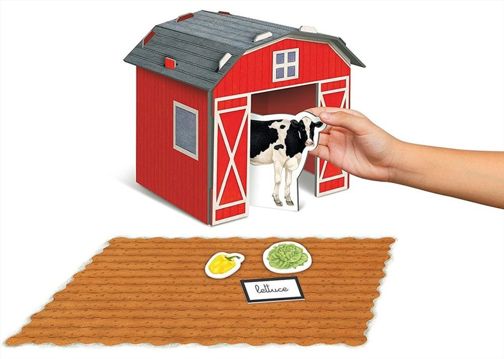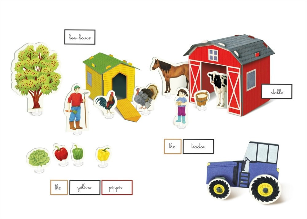 A Clementoni Montessori játéka kiváló az új szavak elsajátításához és az első, egyszerű mondatok megfogalmazásához. Alkossatok meg egy igazán színes gazdaságot a dobozban található sok-sok elem segítségével: gazda, állatok, fák, szerszámok, fészer, tyúkól és traktor. Az elemek neveinek megtanulásában a névcímke segít. Haladó játékmódban a gyermek megpróbálhatja a megfelelő elemet a megfelelő névvel összepárosítani, vagy akár egy teljes mondatot is megalkotni.