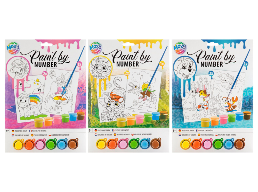 Moxy festés számok szerint 6 db festékkel és ecsettel, többféle Grafix