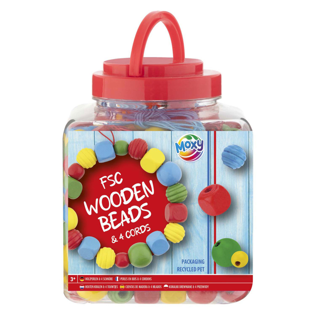 Moxy színes fából készült gyöngyök vödörben, piros Grafix