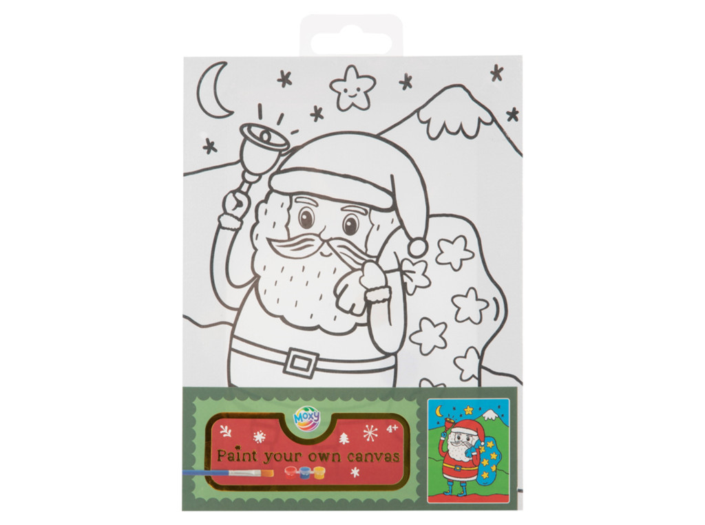 Moxy vászonkép kifestő 3 színnel és ecsettel 20x15 cm, Mikulás csengővel Grafix