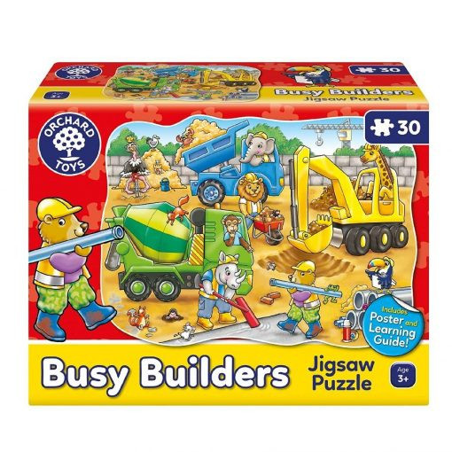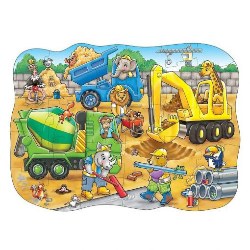 Ez a 30 darabos formájú kirakós tökéletes a nagy építkezések iránt érdeklődő kisemberek számára, hiszen egy ásó, egy billenő és egy betonkeverő, valamint rengeteg mókás figura és a jelenetben zajló vicces esemény is szerepel benne, amelyeket felismerhetsz és megbeszélhetsz.