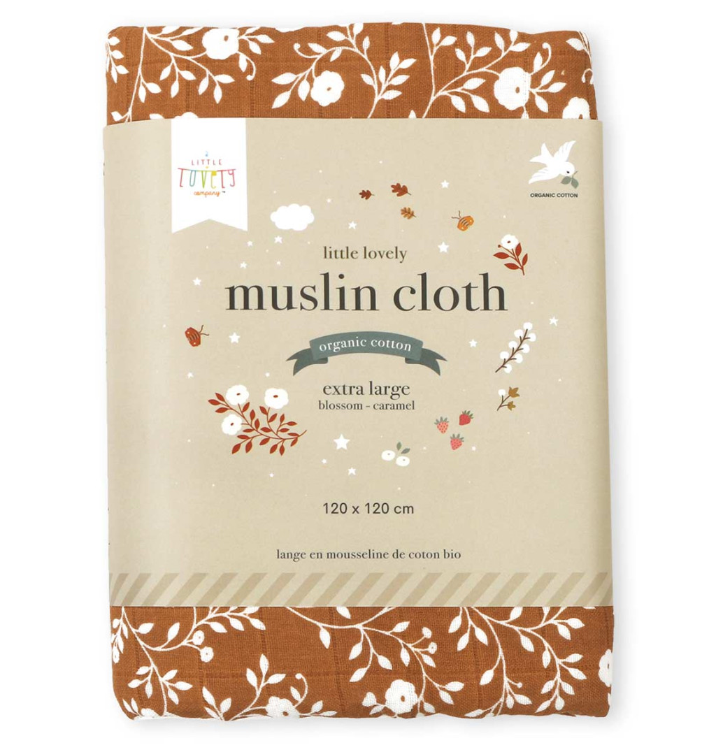 Muszlin kendő XL: virág - karamell