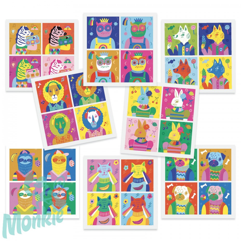 Lépésről-lépésre a matricák egymásra, vagy egymás mellé helyezésével épül fel a matricázó technikával a kép. A Toppon című képsorozat egy kortárs illusztrátor Sarah Wals munkája, a nagy mester Andy Warfol hatásából született.