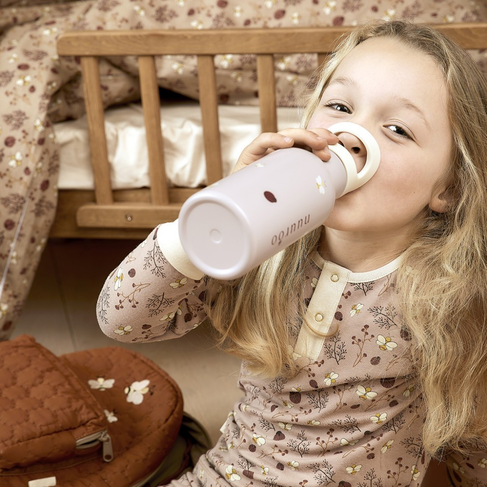 Vidd magaddal kedvenc italod egy pille könnyű és trendi rozsdamentes acél kulacsban és óvd meg a környezeted a káros műanyag palackoktól. A palack termo funkcióval rendelkezik, így a folyadékokat 12 órán át melegen vagy 24 órán át hidegen tartja. Az ivópalack teteje egy normál biztonságosan záró csavaros kupak illetve egy tevékenységfedél, amely tökéletes és szoros ivási funkcióval rendelkezik, szilikon kifolyóval. Mindkét fedél fogantyúval rendelkezik, és könnyen rögzíthető egy táskához vagy babakocsihoz. Űrtartalom: 350 ml.