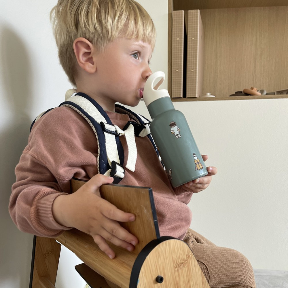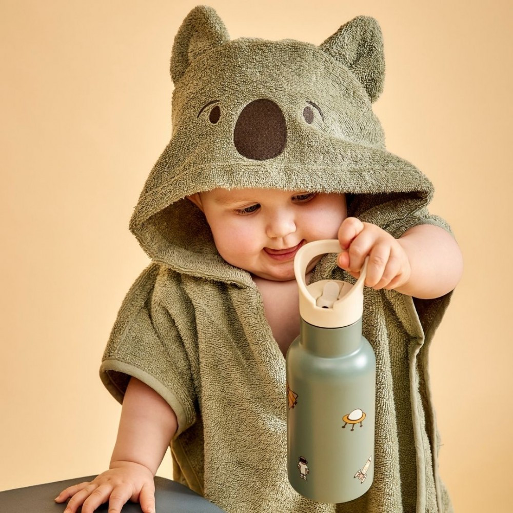 A NUUROO Bertil termosz zöld színben nem csak a stílusa miatt lesz kedvenc kiegészítőd, hanem praktikus funkciói miatt is. Ez a pillekönnyű rozsdamentes acél kulacs nem csak trendi kiegészítője lesz a napi rutinnak, hanem segít óvni a környezetet a káros műanyag palackoktól. A kulacs termo funkcióval rendelkezik, így kedvenc italodat akár 12 órán át melegen, vagy 24 órán át hidegen tartja. A termosz tetején található egy biztonságosan záró csavaros kupak és egy tevékenységfedél is, amely tökéletes és szoros ivási funkciót biztosít, szilikon kifolyóval együtt. Mindkét fedél fogantyúval rendelkezik, így könnyedén rögzítheted táskához vagy babakocsihoz. A termosz űrtartalma 350 ml, így elegendő folyadékot vihetsz magaddal, legyen szó bármilyen programról. Származási helye: Dánia.