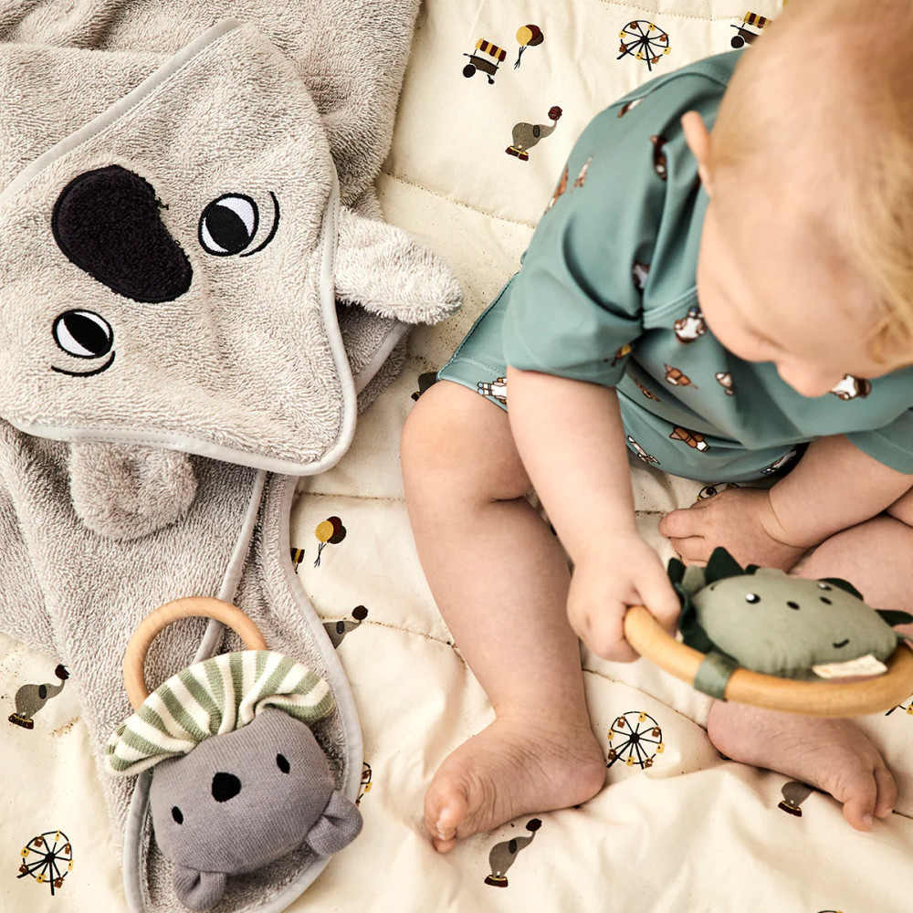 A NUUROO Koala csörgő a tökéletes játék a kisbabád számára! Puha, szórakoztató és 100% -ban organikus kötött pamut anyagból készült, ami garantálja a bőrbarát érintést. A csörgő része pedig FSC-tanúsítvánnyal rendelkező bükkfából készült, ami biztosítja a termék környezetbarát jellegét. Ezzel a dán származású csörgővel a játék órákig tartó szórakozást és örömöt szerez a kicsiknek. CE teszttel ellátott, hogy biztonságos legyen a legkisebbek számára is. Játssz és tanulj a NUUROO Koala csörgővel!