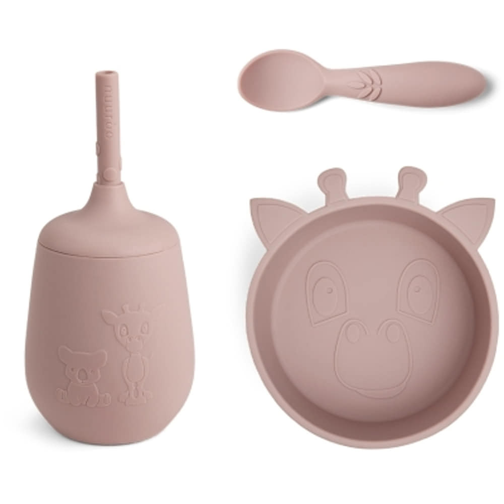 NUUROO Szilikon zsiráfos étkészlet 3 részes- Rózsaszín