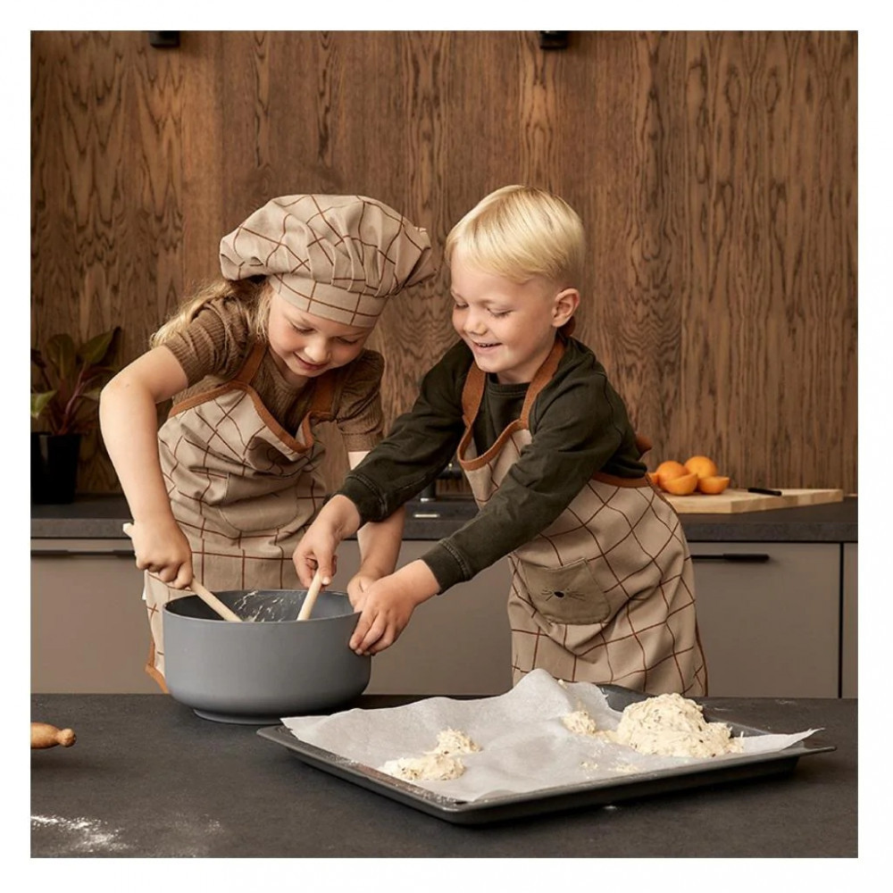 A NUUROO kötény szett egyszerűen tökéletes kiegészítője minden kis szakács gyűjteményének. A szettben található kötény és szakácssapka segítségével a gyerekek igazán beleélhetik magukat a főzésbe, és érezhetik, hogy ők is fontos részesei a családi étkezéseknek. A szett Dániából származik, és gondosan készült 100%-ban organikus pamutból, hogy a legkisebbek is biztonságosan és kényelmesen tudják használni. Az Elliot köténykészlet nem csak praktikus, de rendkívül stílusos is - tökéletes választás a család kis séfjének.