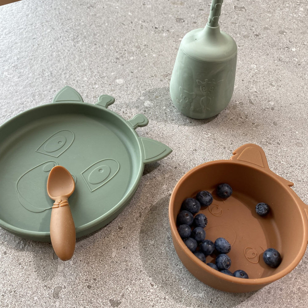 NUUROO szilikon 4 részes étkészlet- sötétzöld zsiráf