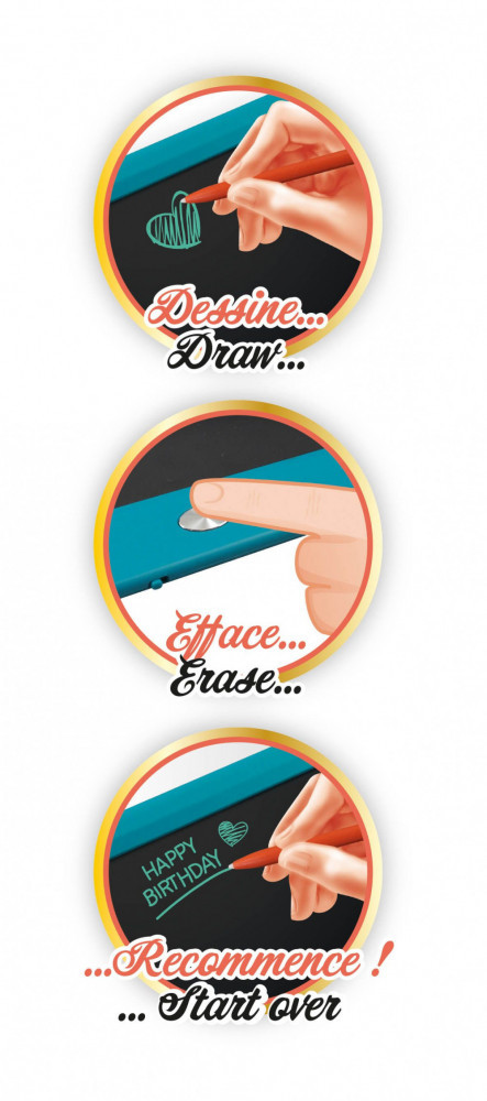 Írj, rajzolj vagy készíts jegyzeteket a nagyméretű LCD-képernyővel ellátott Buki rajztáblán! A táblához tartozó ceruza úgy működik, mint egy toll. Amikor nem használod, csak illeszd vissza a tábla oldalán kialakított helyére, így garantáltan nem hagyod el. A tábla törléséhez egyszerűen csak meg kell nyomnod az elején található gombot.