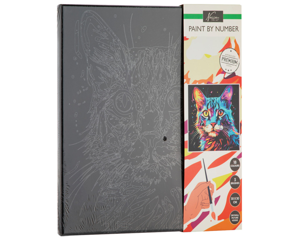 Nassau festés számok szerint fekete vászonra, Macska 30 x30 cm CraftArt