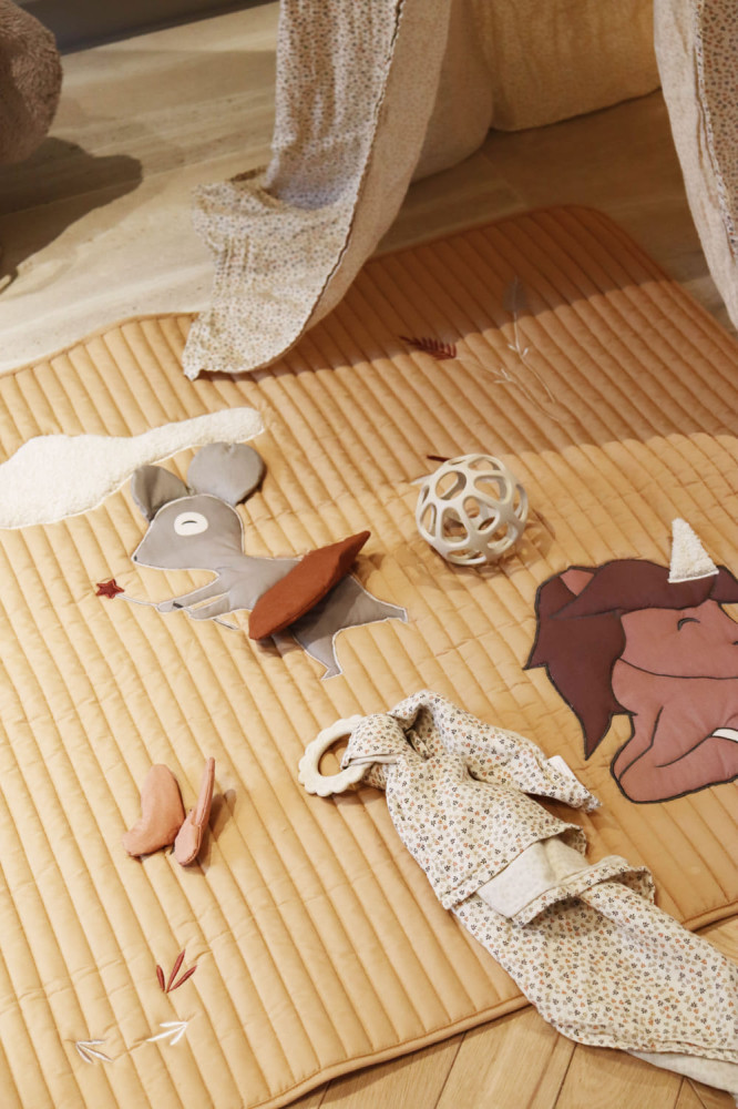 Az Emil játszószőnyeg tökéletes a gyermek motoros érzékeinek és kíváncsiságának fejlesztésére. Helyezze a kisbabát a hasára, és hagyja, hogy felfedezze az aranyos témákat. A szőnyeg 100% organikus pamutból készült, újrahasznosított poliészter töltettel és CE-teszttel rendelkezik.