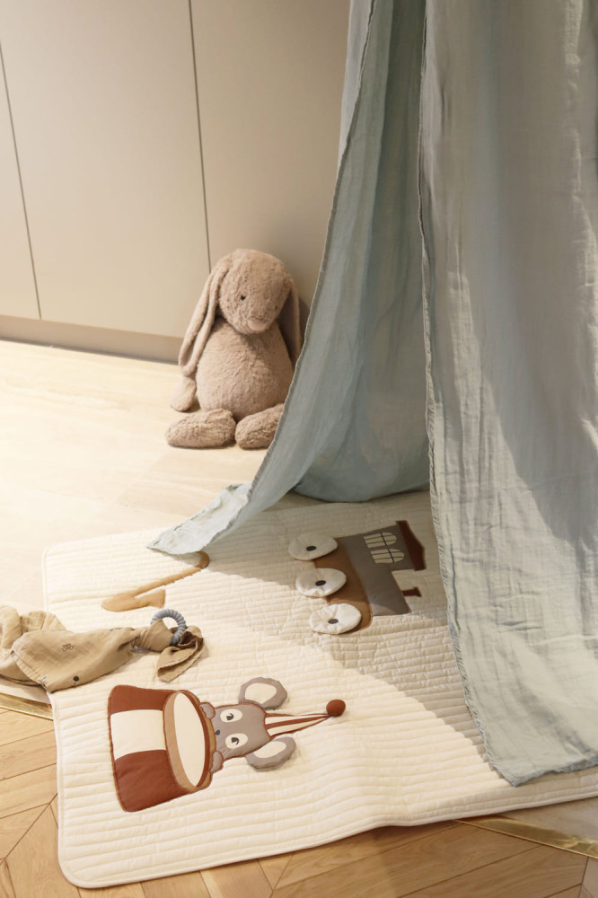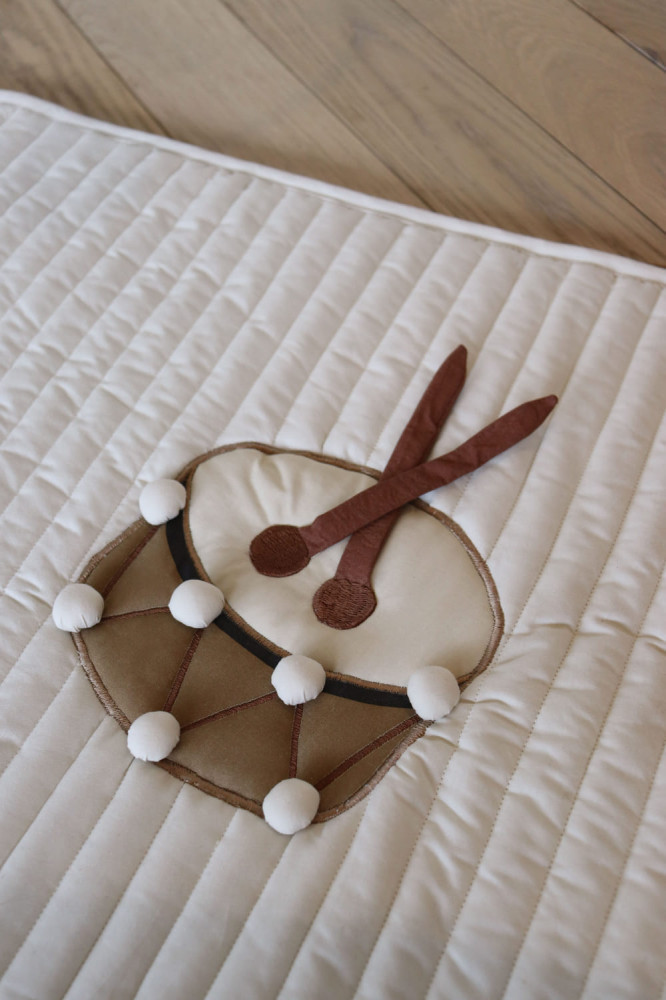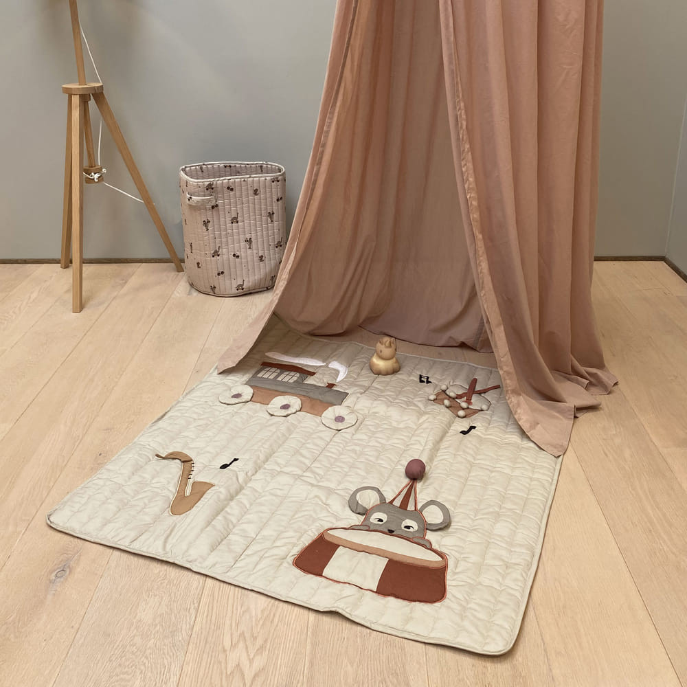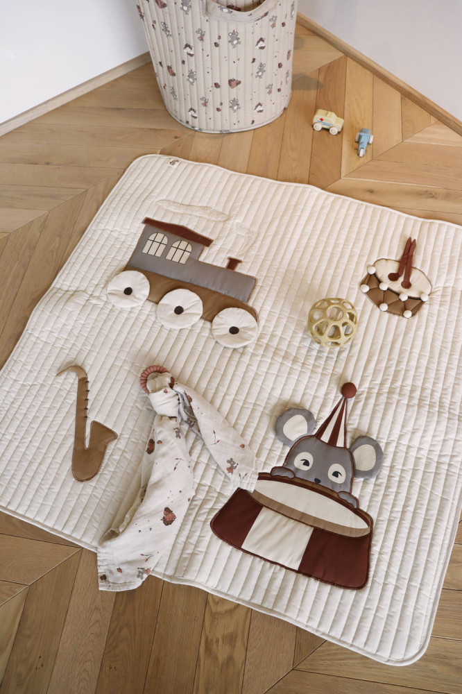 Az Emil játszószőnyeg tökéletes a gyermek motoros érzékeinek és kíváncsiságának fejlesztésére. Helyezze a kisbabát a hasára, és hagyja, hogy felfedezze az aranyos témákat. A szőnyeg 100% organikus pamutból készült, újrahasznosított poliészter töltettel és CE-teszttel rendelkezik.