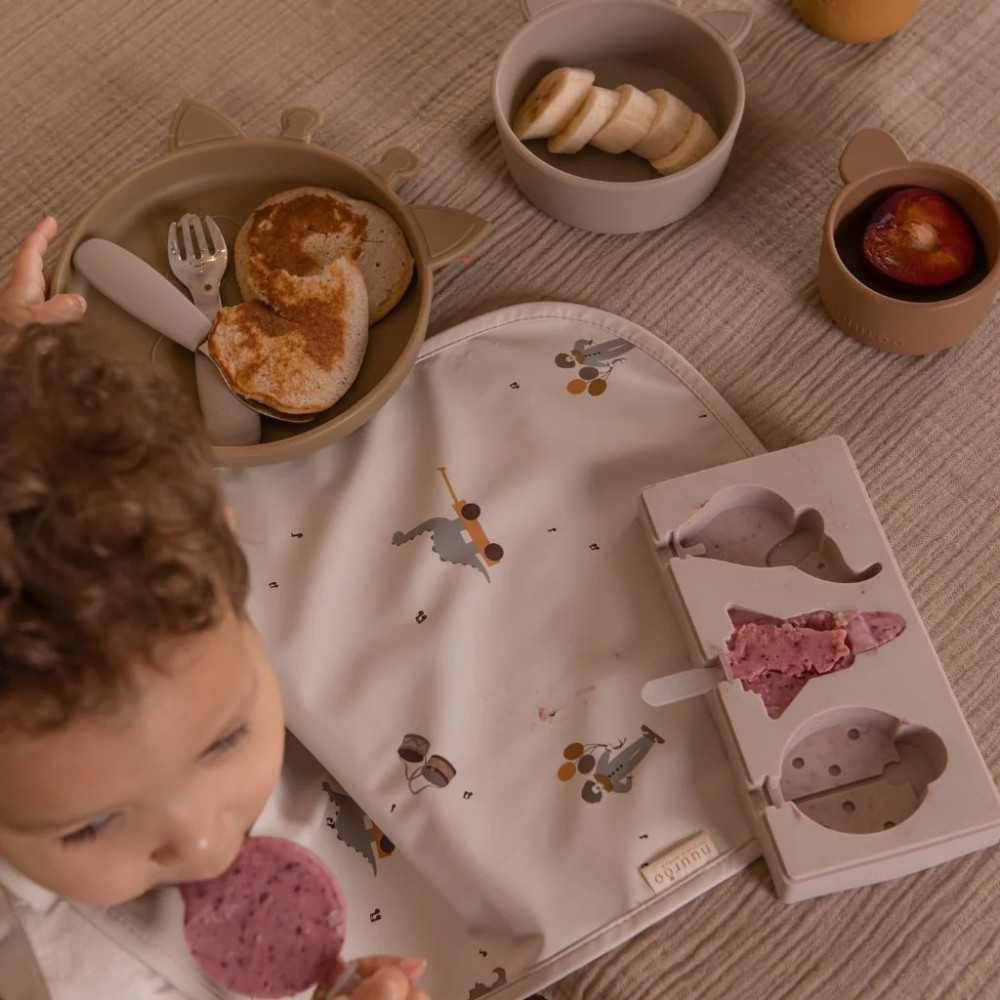 • Könnyen Kezelhető: A kisebb kezek számára is könnyen használható, biztonságos étkészlet.