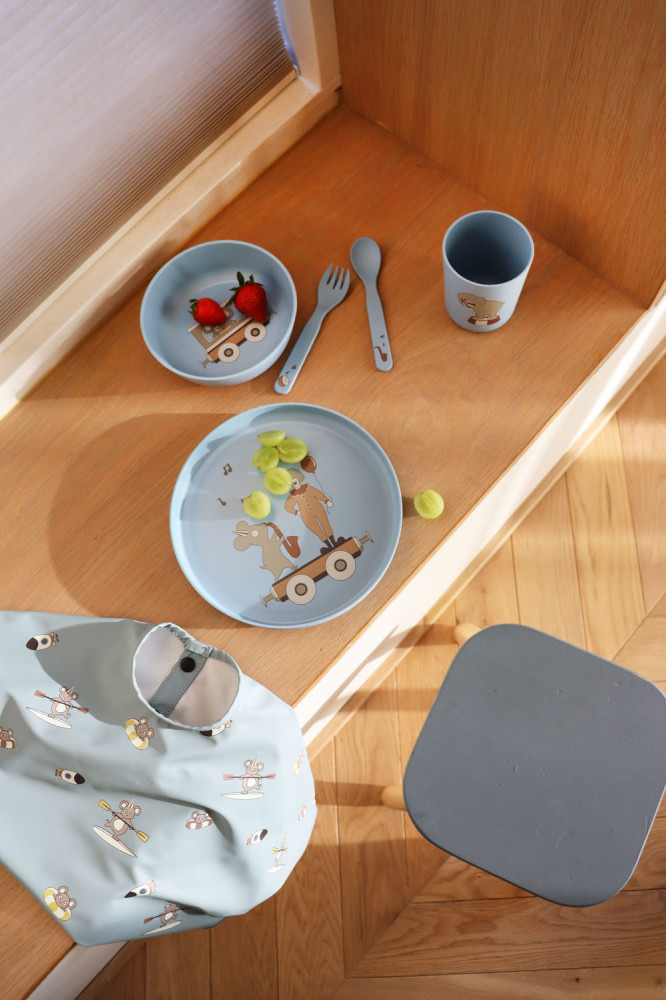 Az 5 darabos Marius étkészlet 100% PLA-ból készült, és mosogatógépben mosható.