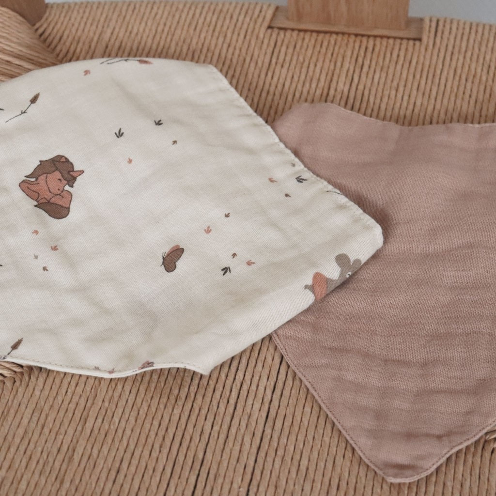 A Villads muszlin előke egyszerre praktikus és stílusos – tökéletes kiegészítő a baba ruhatárába, természetes anyagokból, skandináv letisztultsággal.