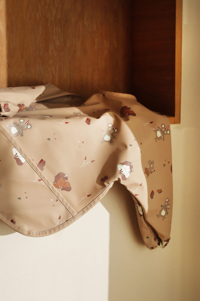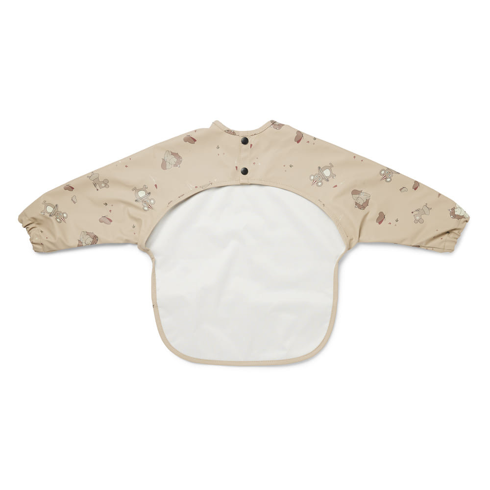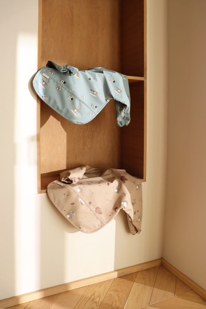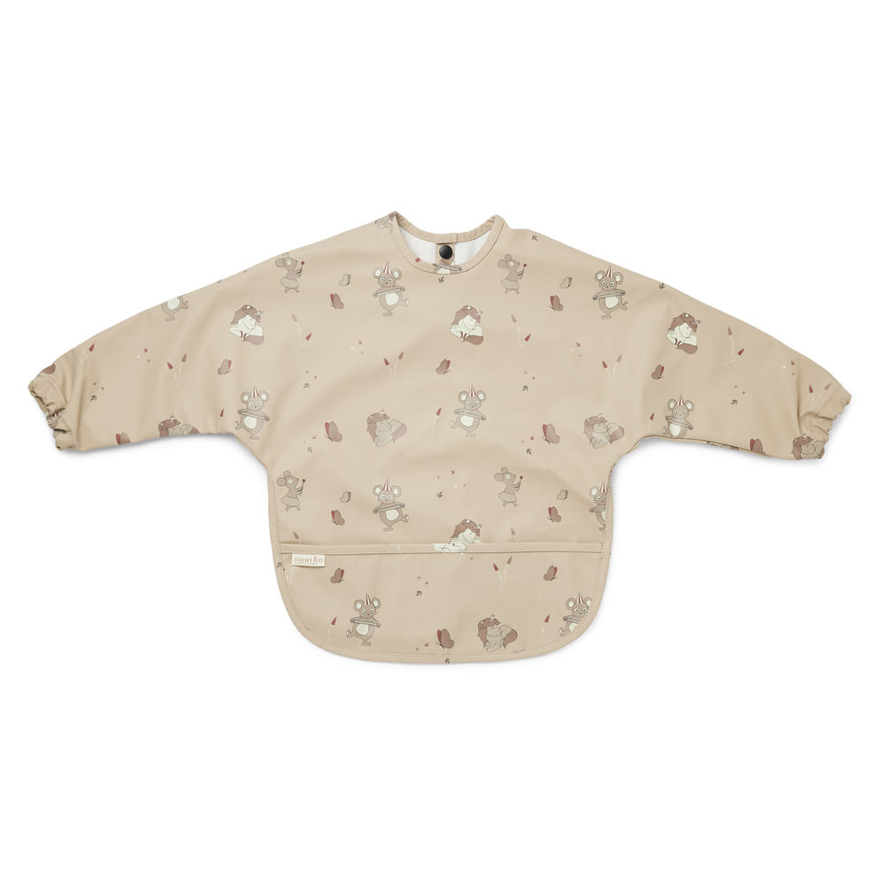 Praktikus előke hosszú ujjal enni tanuló gyerekeknek. Az előke eltakarja a baba elejét és mindkét karját, és segít elkerülni az ételt stb. a ruhákon. Az újrahasznosított poliészternek köszönhetően az előke könnyen tisztítható ruhával, így készen áll a következő étkezésre. Kihagyhatatlan csecsemős és kisgyerekes családoknak.
