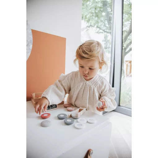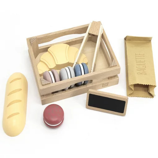 Kényeztesd vásárlóidat a legfinomabb, frissen sütött francia baguette-el, croissant-al vagy akár a legédesebb macaroon-okkal uzsonnára! A Label-label francia pékárukból és süteményekből álló minőségi fából készült játékkészletével garantáltan tiéd lesz a legjobb pékség az egész környéken!