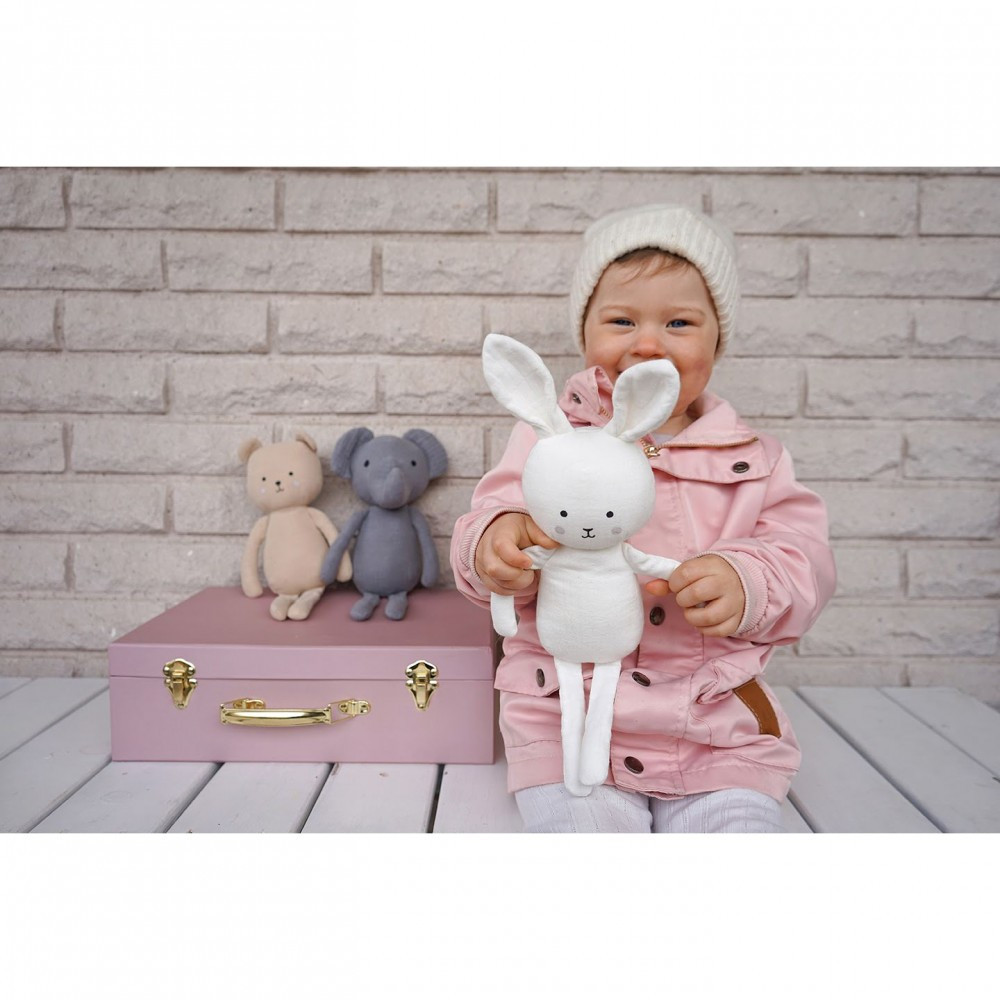 Ez a nyuszi puha és bújós barát a legkisebbek számára. A kis plüss egy szép és exkluzív díszdobozban érkezik, amely tökéletes ajándék az első születésnapra, keresztelőre vagy a babalátogatás alkalmával. A gyerekek gyakran nagyobb biztonságban érzik magukat egy ölelgethető plüssjátékkal, akivel lefekvéskor összebújhatnak.