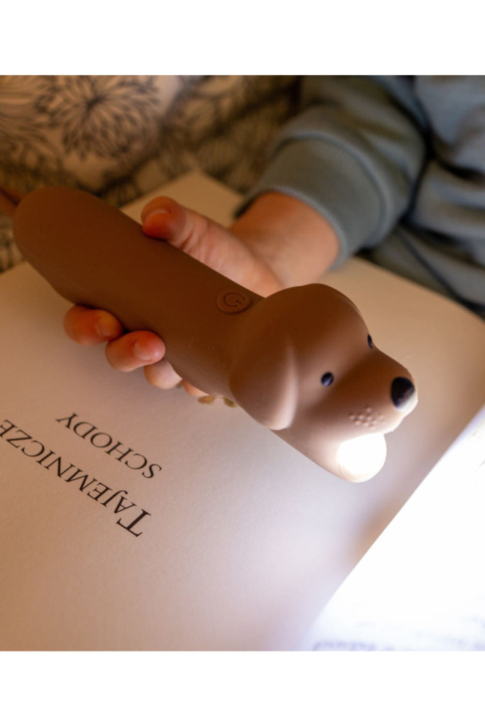 A kutya alakú , puha szilikonnal bevont zseblámpa a szórakozás és a funkcionalitás kombinációja. A praktikus fényerő-beállításnak köszönhetően tökéletes az esti kalandokhoz, árnyékszínházhoz és esti mesék meséléséhez. USB-C kábelen keresztül töltve, kényelmes és hosszú üzemidőt biztosít. A medál lehetővé teszi, hogy a zseblámpát oda akassza, ahol a legnagyobb szükség van rá.