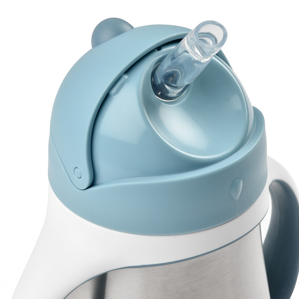 Béaba Rozsdamentes Acél Szívószálas Ivópohár 250 ml - Viharkék