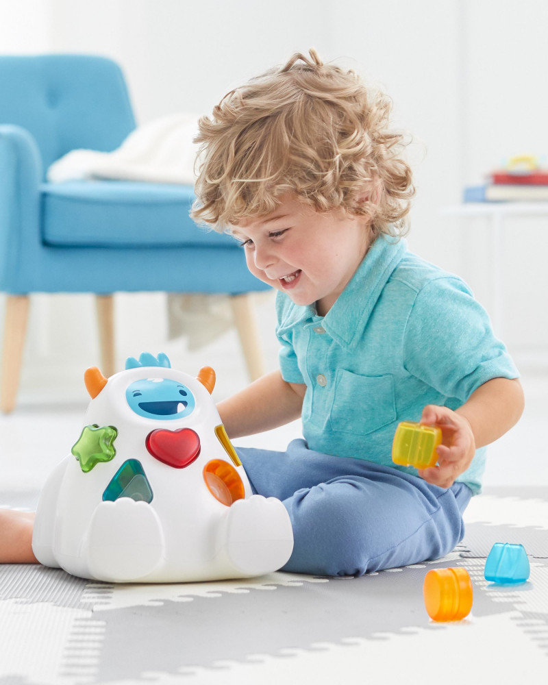 3. szakasz: A Yeti arra ösztönzi a gyereket, hogy találjanak meg konkrét formákat és színeket. Ha az összes alak helyesen van elhelyezve, fények, zene és bátorító mondatok jutalmazzák a babát