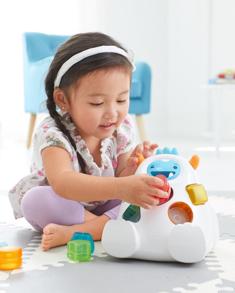 - segít fejleszteni a finom motorikus képességeket, a probléma megoldást, a kéz-szem koordinációt, valamint az ok-okozatot