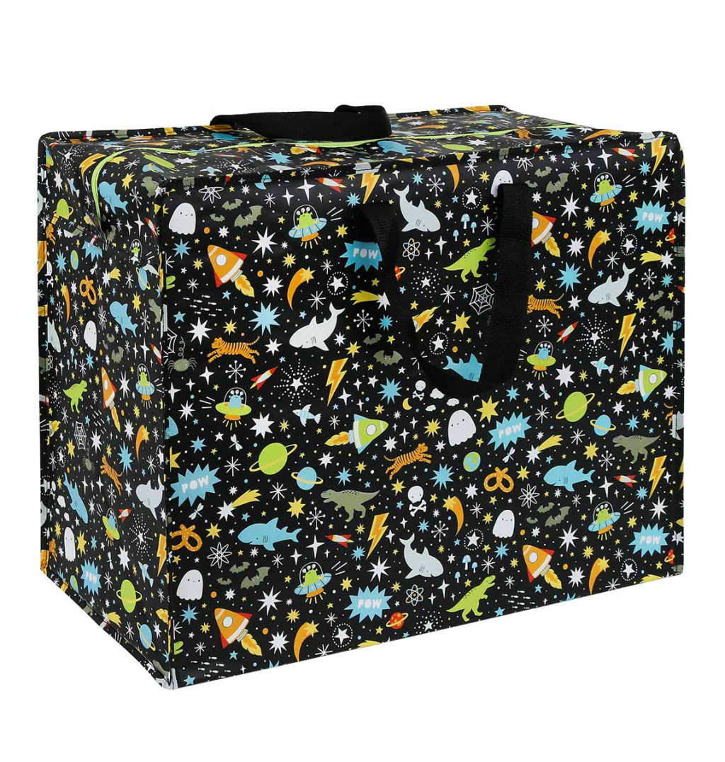 Ez a nagyméretű tárolótáska ideális ruhák, paplanok és játékok tárolására, de akár strandra vagy uszodába is elvihető. A táska újrahasznosított műanyagból készült, és cipzárral záródik. A táska össze is hajtható, így praktikus a tároláshoz.