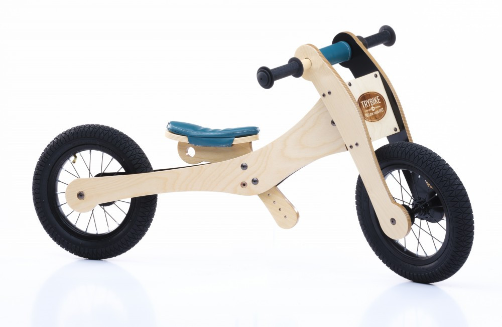 Trybike Wood, futóbicikli 4 in 1 blue, türkiz
