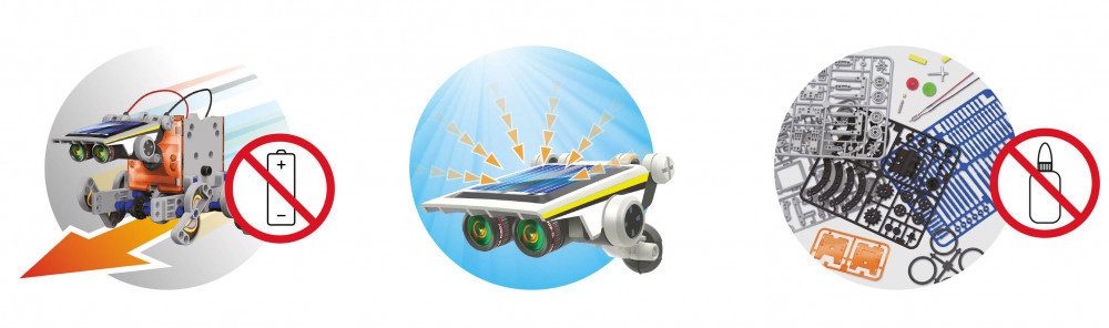 Szereld össze az alkatrészeket és készíts egy napenergiával működő robotot! 14 féle modellt tudsz összeállítani az illusztrált színes útmutató segítségével.