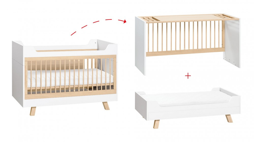 - A kiságy később heverővé alakítható, és a fennmaradó elemekből egy íróasztal is készíthető.