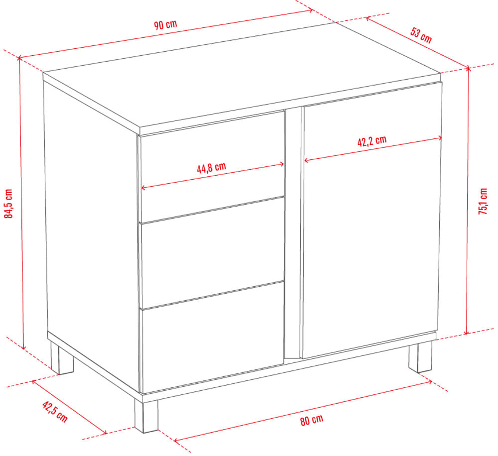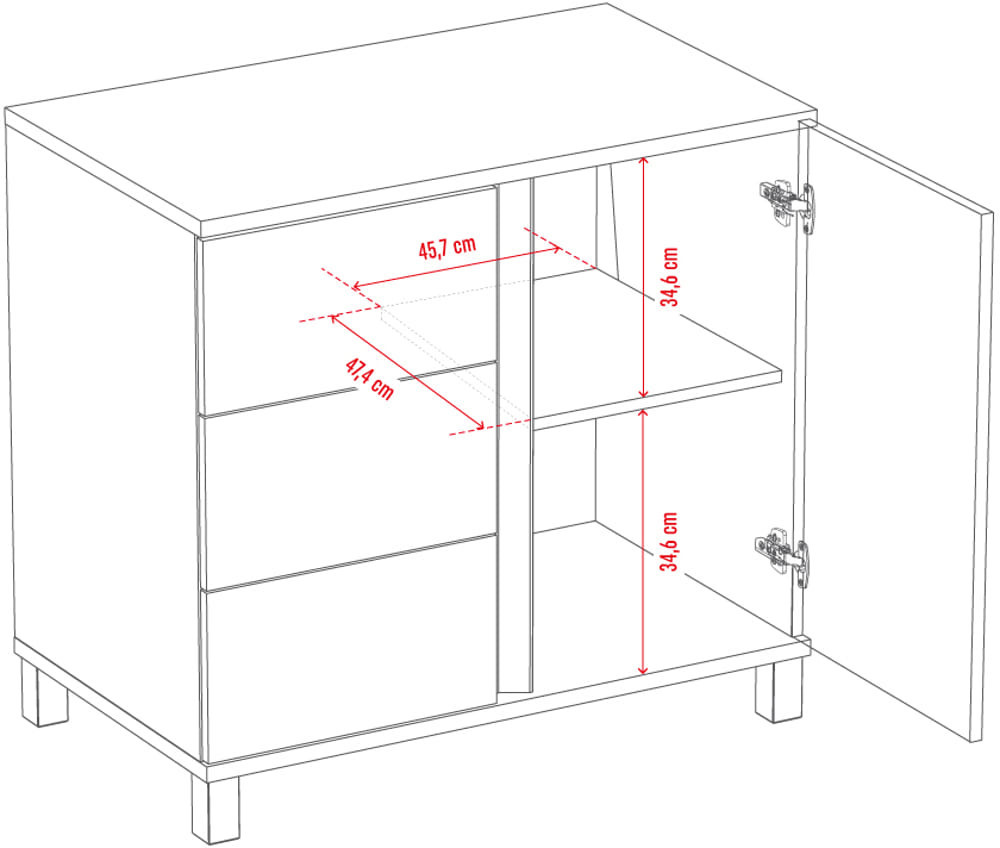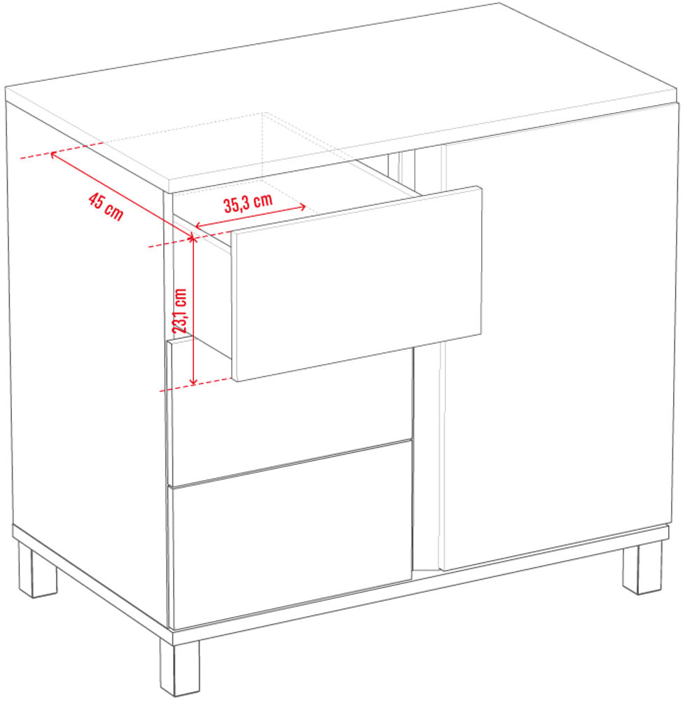 VOX Altitude 1 ajtós 3 fiókos komód - Fehér