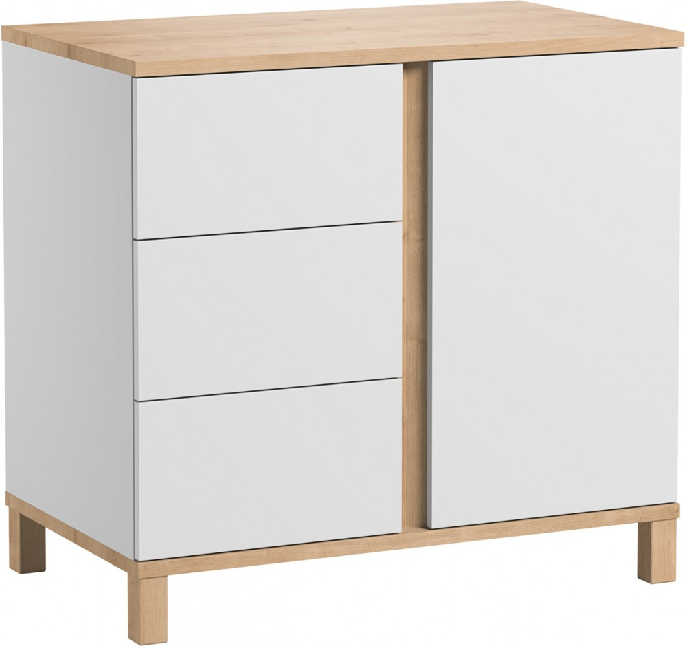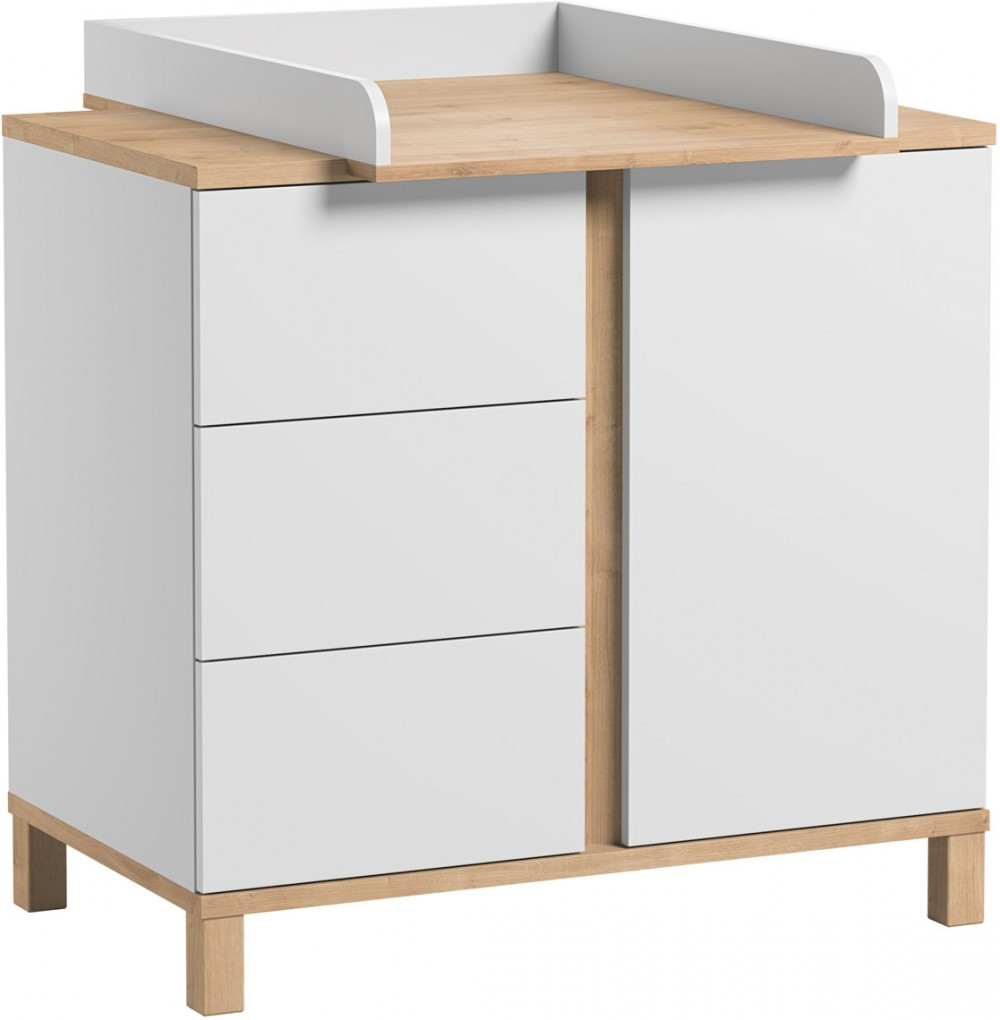A tágas komódban nagyobb és kisebb tárgyak is elférnek, melyek eleinte a babaápoláshoz kellenek, később a nagyobb gyermek dolgai tárolhatóak benne.