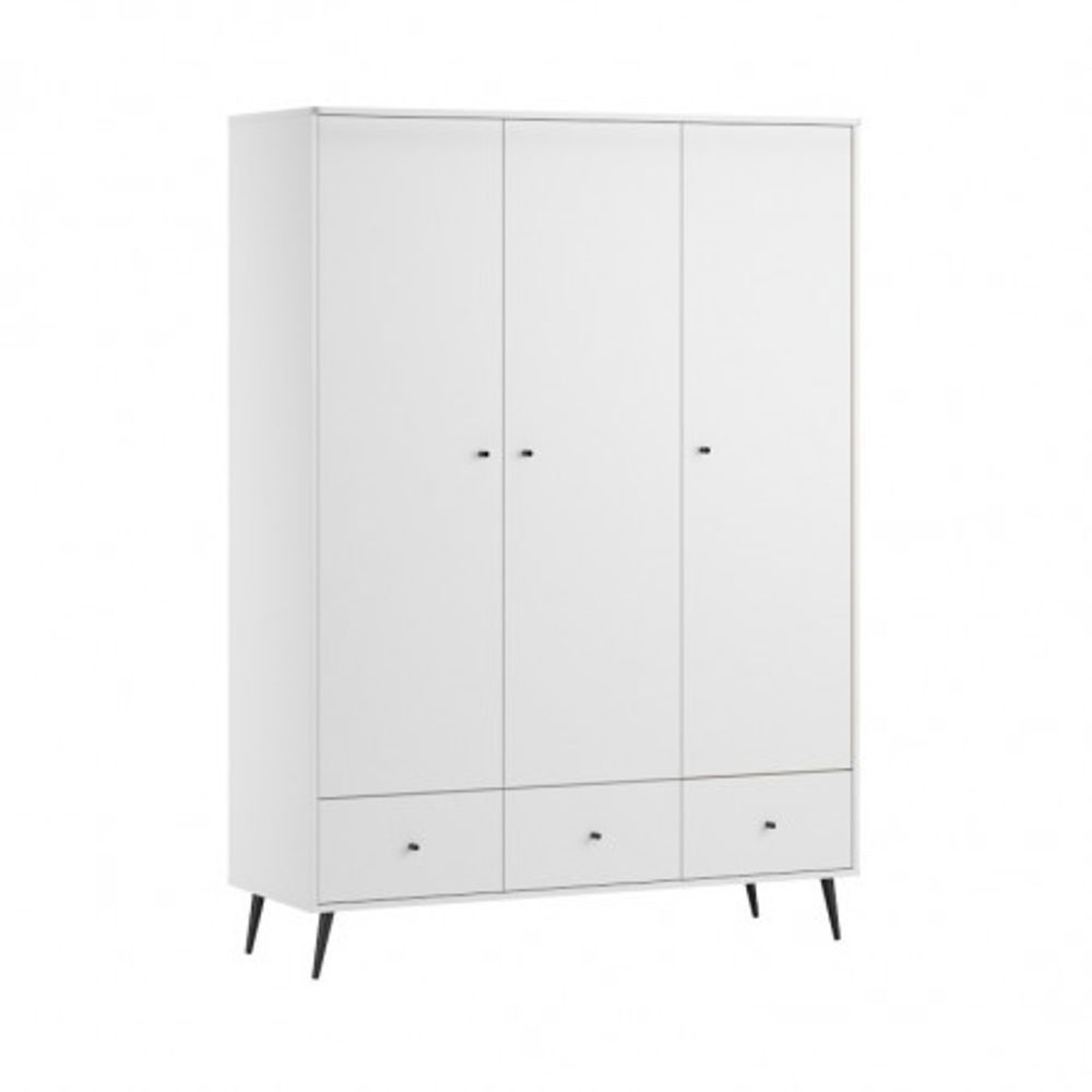A Blanca gardrób három ajtaja a maximális tárolásra optimalizált belső teret tárja fel. Az ajtók letisztult vonalai és a darab minimalista dizájnja modern és kifinomult megjelenést kölcsönöz neki, míg a karcsú fekete fém lábak finom kontrasztot adnak, amely kiemeli modern stílusát. Ezek a lábak esztétikájuk mellett optimális stabilitást biztosítanak, miközben könnyedséget adnak az egész bútornak.